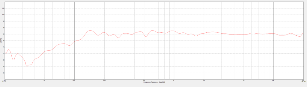 In-room frequency response (2.83v – 1m – 1/12th smoothing) [+/- 3db 125hz-20khz non-anechoic]