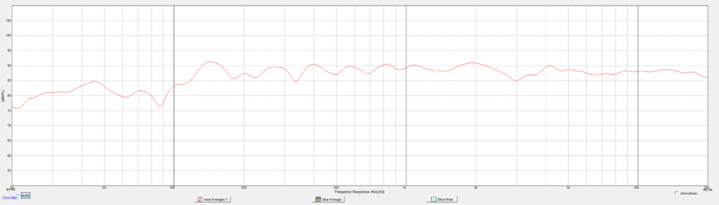 In-room frequency response (2.83v – 1m – 1/12th smoothing) [+/- 3db 125hz-20khz non-anechoic]